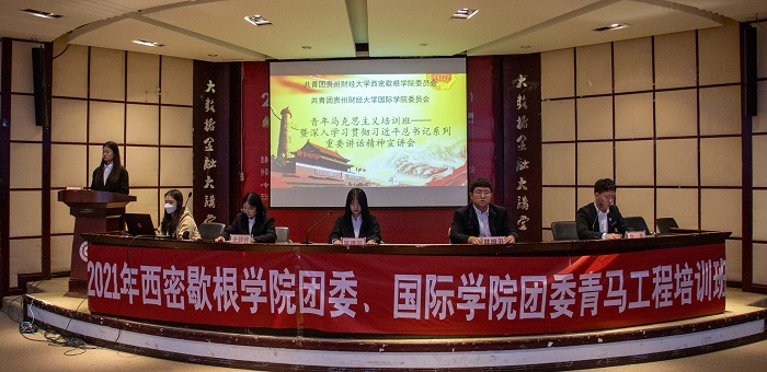 随后,尤婷婷、陈德丽、韩锦泓、陈希四位同学分别围绕“学习习近平新时代中国特色社会主义思想”“习近平总书记视察贵州重要讲话精神”“习近平总书记‘七一’重要讲话精神”“习近平总书记在党史学习教育动员大会上的重要讲话精神”四个方面进行宣讲,号召同学们树立正确的发展观与价值导向,既要学习中国传统文化的优秀精髓,也要将着眼于国际社会,学习他国先进技术文化。