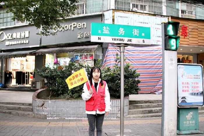 志愿者们不管天气寒冷,利用自己课余时间走进社区进行志愿活动,穿上红马甲站在志愿者岗位上无私奉献。在宅吉小区协助社区工作,志愿者积极做文明引导员,在十字路口斑马线处劝阻闯红灯的居民,热心地搀扶老人过马路,给路人指路,帮助保洁员推清洁车。志愿者们不怕麻烦、不怕脏、不怕累,团结合力,用自身行动,诠释文明安全的重要性,将“不忘初心、牢记使命”的精神内化于心,外化于行。