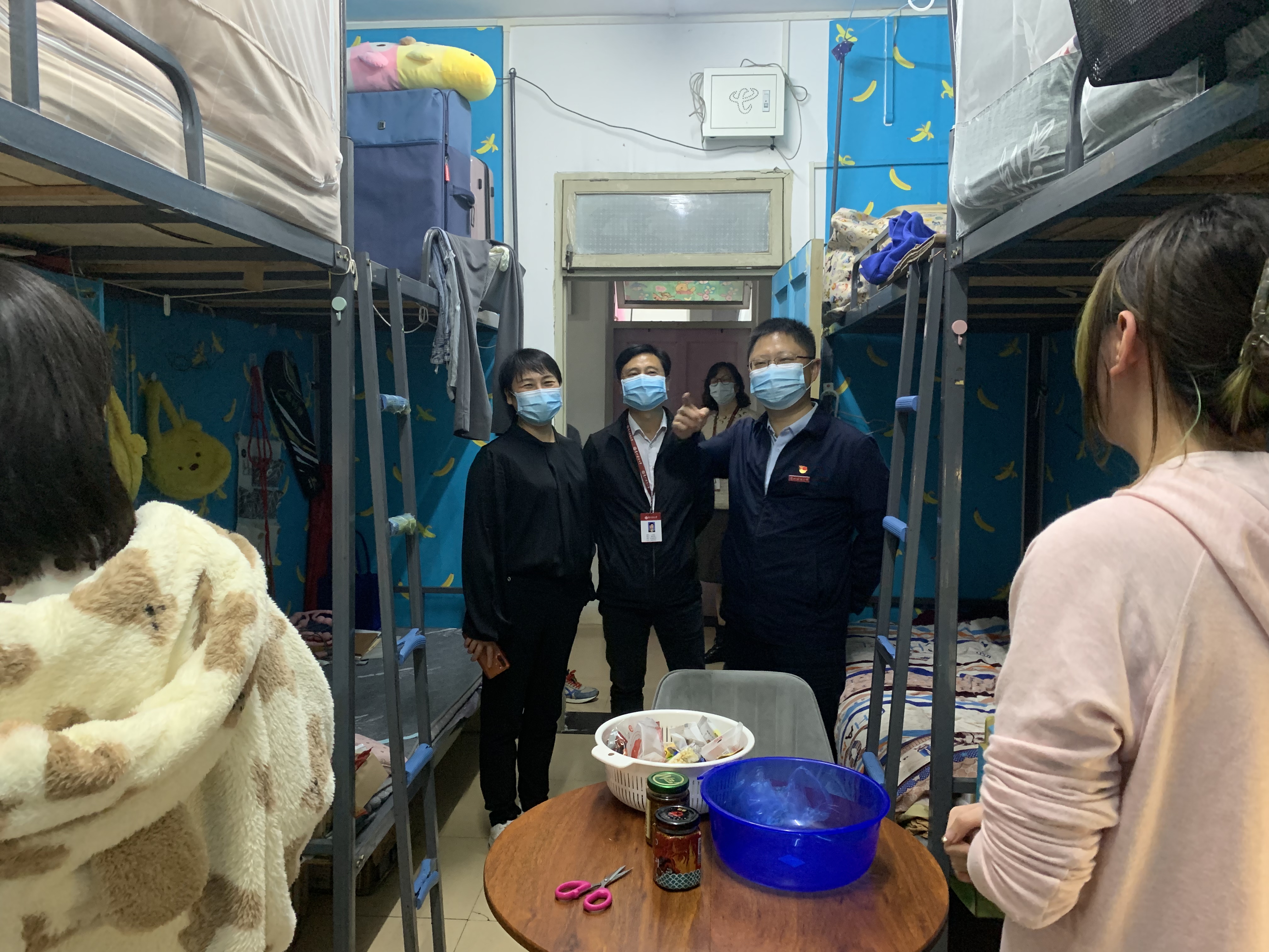 走访中,赵普对同学们自疫情发生以来能积极配合落实属地及公司各项疫情防控政策措施和主动高效地开展线上学习表示肯定,并与宿舍同学们进行亲切交流,“你来自哪里?家是什么地方的?到这里吃住习惯吗?有什么困难?……”每到一个宿舍,校领导都对员工们嘘寒问暖,一句句贴心的问候,一句句暖心的话语,让同学们感受到了家的温暖。同时鼓励毕业班的同学备战考研、积极就业。离开宿舍时再次嘱咐同学们要继续绷紧疫情防控这根弦,提高自身安全防范意识,严格按照规定做好宿舍通风消毒,卫生清洁及个人健康监测;同时还要加强个人时间管理和体育锻炼,保证身体健康。