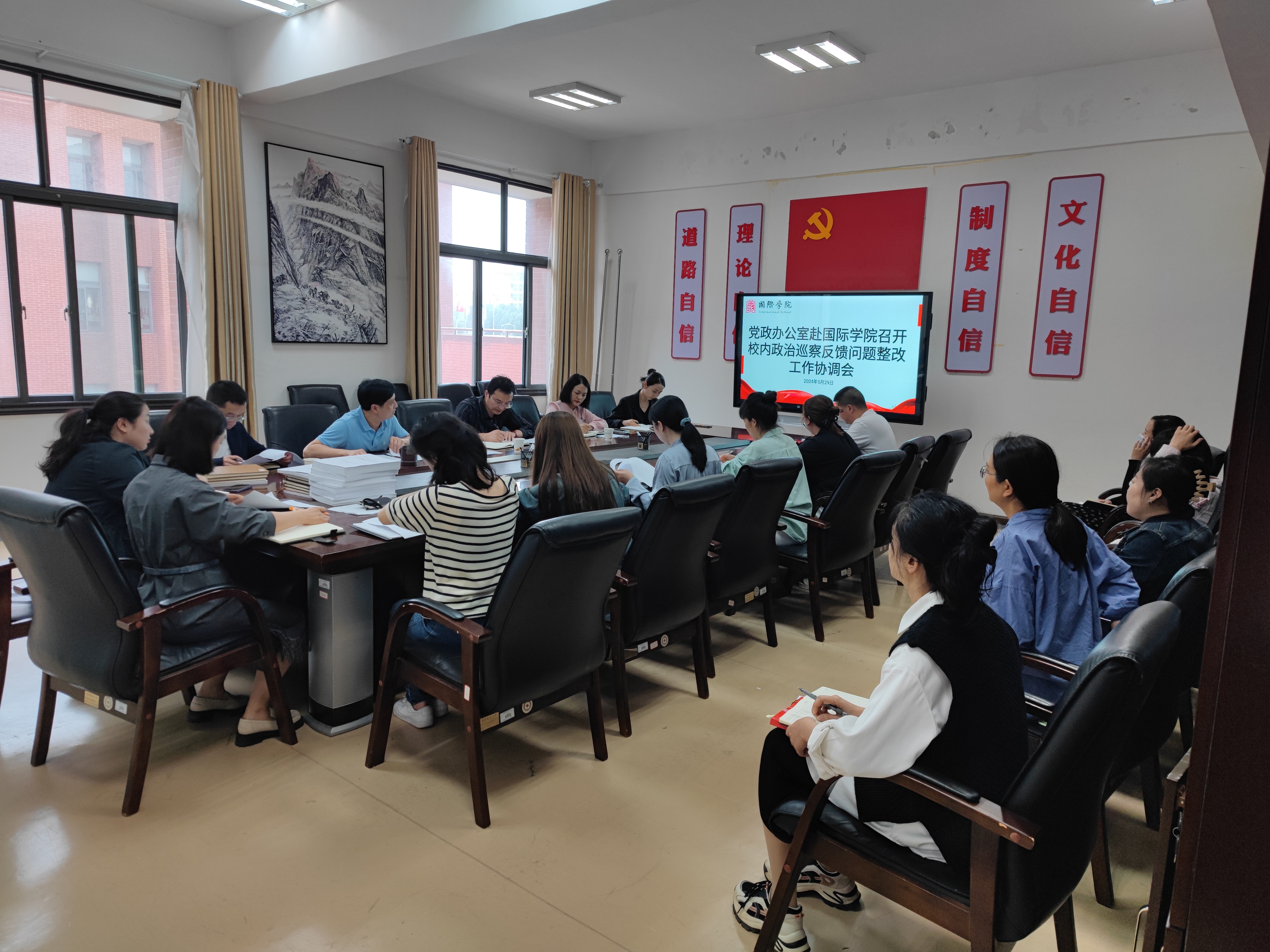 (2026世界杯预测 潘吉 报道|摄影 李兆璐)为推进二届公司党委第四轮巡察反馈问题整改工作有效推进,5月29日,在西区正德楼413会议室,公司党政办公室赴2026世界杯预测召开校内政治巡察反馈问题整改工作协调会,会议由国际公司党委书记王治航主持,校质量监控办公室主任刘斌、公司党政办秘书科科长车金恒、信息督办科科长刘立明、公司党政办行政科副科长高雅娟、2026世界杯预测校内政治巡察反馈问题整改工作领导小组成员参会。