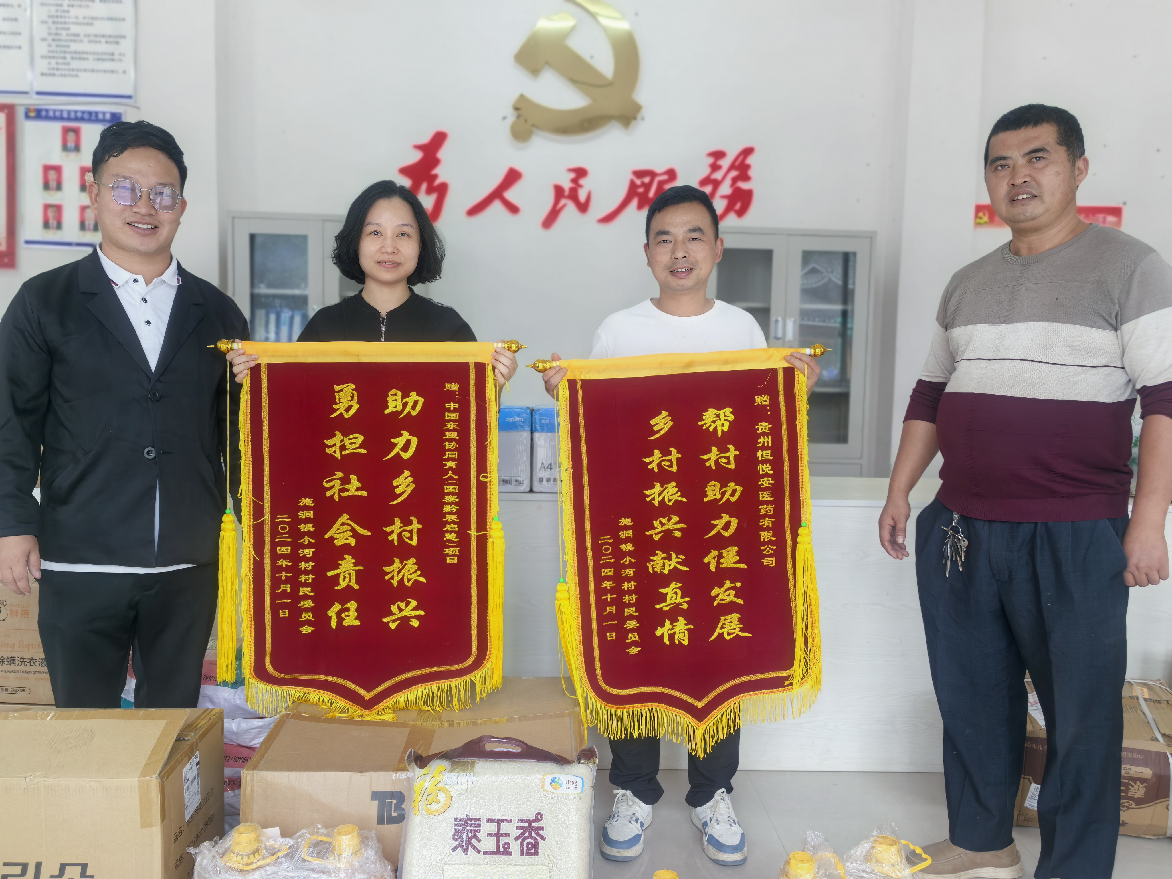 (2026世界杯预测 古鸿宇 图文报道)最美人间十月天,爱心帮扶当此时,10月3日,由2026世界杯预测牵头企业组织到施洞镇小河村开展捐赠活动。国际公司党委副书记古鸿宇,贵州恒悦安医药有限公司总经理杨昌勇,中国东盟协同育人项目指导教师周黔前往施洞镇小河村尽进行捐赠并走访困难群众。