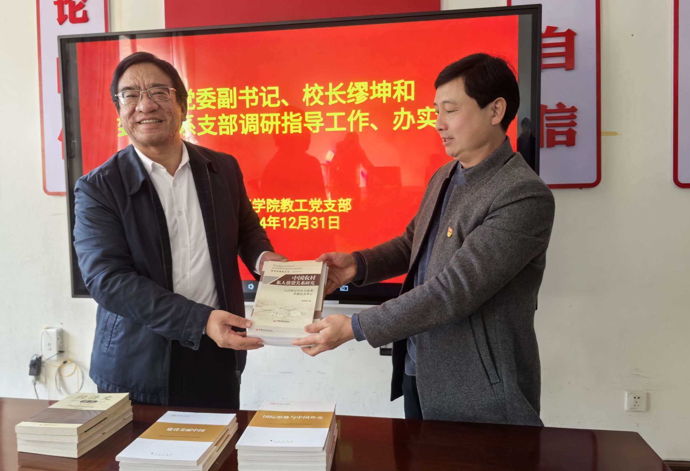 课后向支部赠送一套《全国干部学习培训教材》和作为主编出版的《经济史》论丛书籍三册。