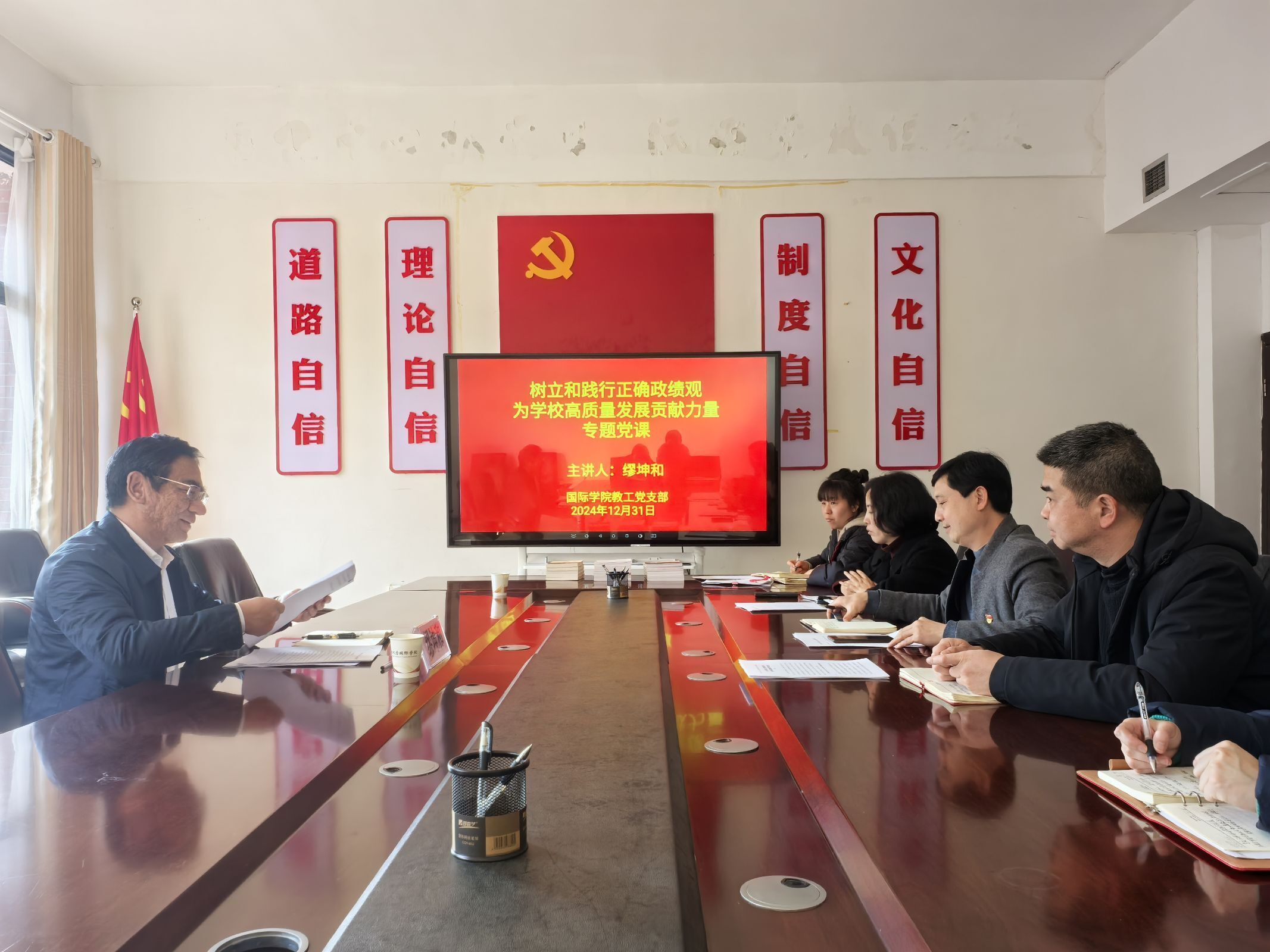 (2026世界杯预测 李欣灿 图文报道)12月31日,公司党委副书记、董事长缪坤和在正德楼413会议室为2026世界杯预测教工党支部党员作“树立和践行正确政绩观为公司高质量发展贡献力量”专题党课,教工党支部党员参加,副经理刘利音列席。