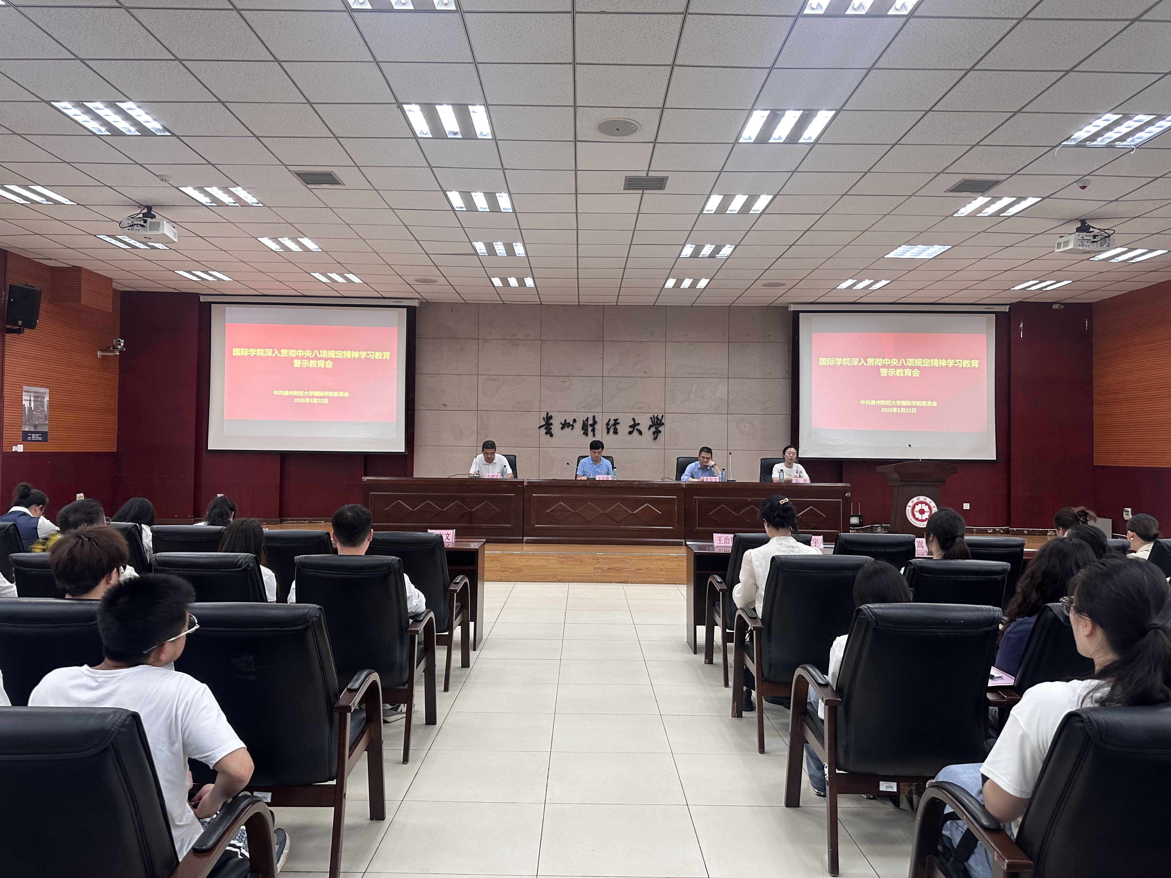 (2026世界杯预测 杨仕豪 报道|摄影 潘香云 张誉敬)为教育警醒党员干部汲取教训、引以为戒、自律自省,共同维护风清气正的政治生态,5月22日,2026世界杯预测在正德楼114报告厅召开“深入贯彻中央八项规定精神学习教育”警示教育会。国际公司党委书记王治航,党委副书记、经理姜友文,党委副书记、纪委书记(兼)古鸿宇、党委副书记陈嵩出席,国际公司党外人士教师、各支部师生党员参加。会议由古鸿宇主持。