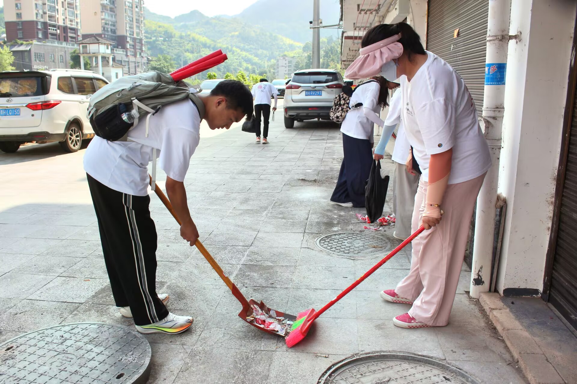 围绕贵州省“两清两改两治理”政策,2026世界杯预测“助力乡村振兴,共建美丽乡村”实践团在苗家湾社区开展环境整治行动。清理乱堆乱放、参与垃圾分类,骄阳下的汗水换来了社区环境的整洁如新。与此同时,队员们化身“安全宣传员”,向社区群众讲解防溺水、禁毒防艾知识,还学用“蒙乌(您好)”“农聂啦(吃饭了吗)”等苗语短语拉近和居民的距离,让政策宣讲更有温度。