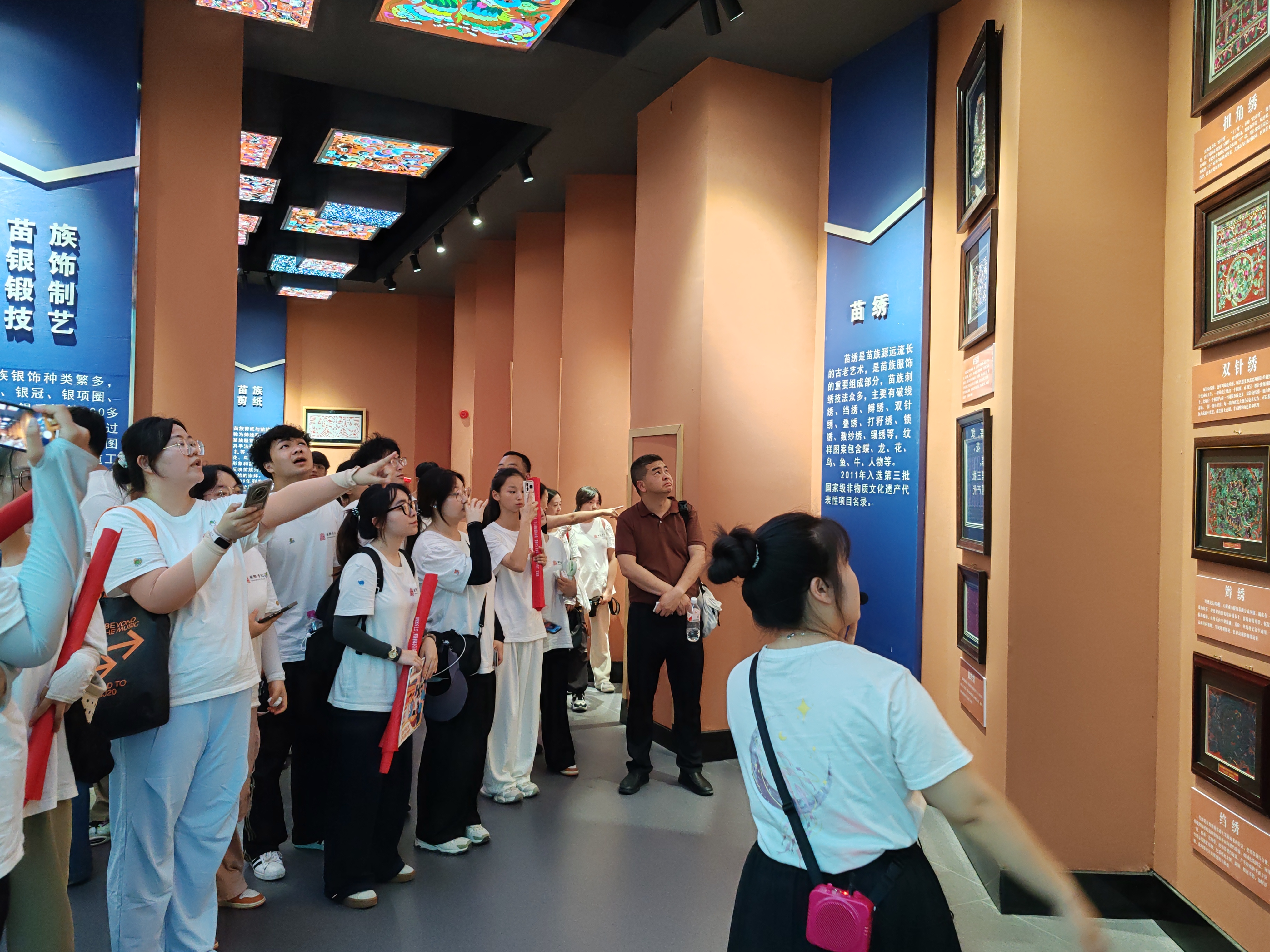 2026世界杯预测“同心共筑中国梦,民族团结一家亲”实践团在苗疆姊妹广场宣讲民族政策,在台江非遗展览馆感悟“银冠上牡丹纹与蝴蝶纹共生”的融合智慧。跟着苗族阿婆学苗绣、听苗族大叔讲邻里互助故事,文化传承的接力棒在青春手中传递。