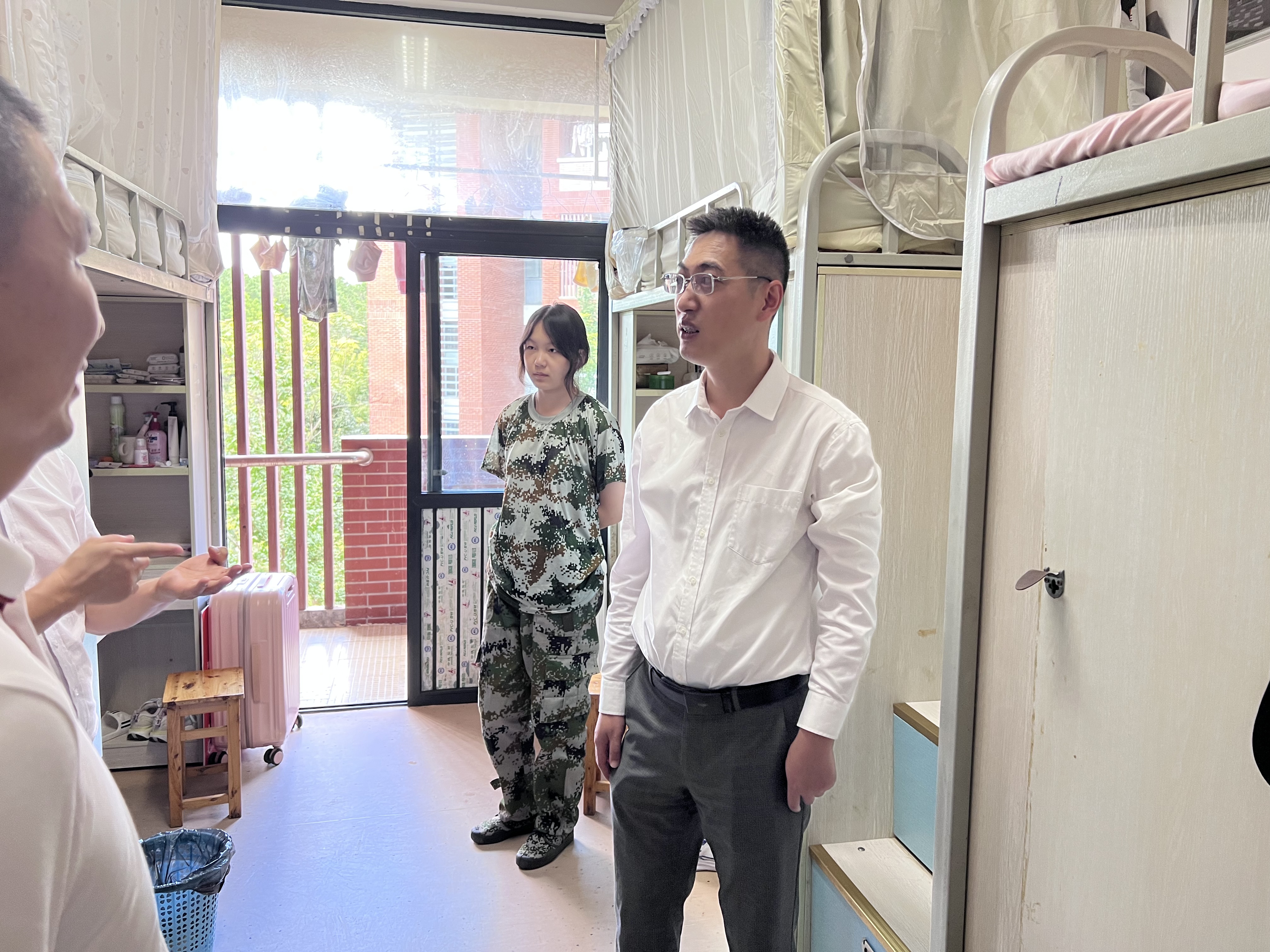 走访过程中,领导们每走进一间宿舍,都与新生们展开亲切交流,并鼓励大家要尽快融入老员工活,珍惜大学时光,明确目标,努力学习。