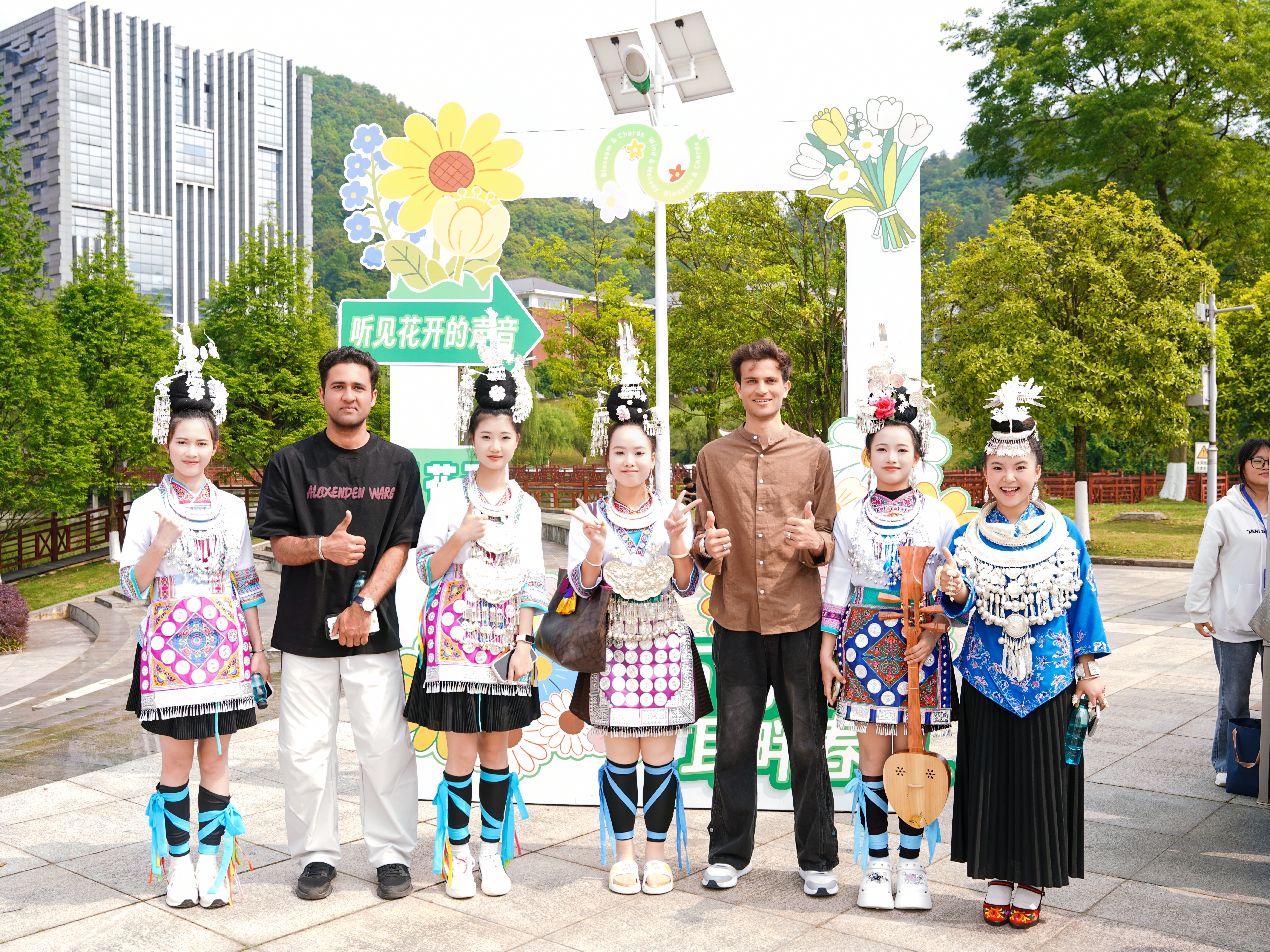 文艺汇演上,中外员工带来民族歌舞、异域舞蹈、汉服秀等节目,职工分享《我眼中的贵州》,展现多元文化交融风采。游园会设置非遗体验、特色市集与趣味互动游戏,中外师生共同体验泰国宋干节等民俗,在轻松氛围中增进交流。