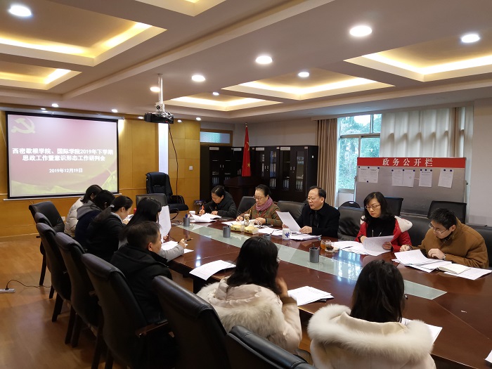 会上由班子成员领学了《中国共产党宣传工作条例》、《中共世界杯冠军预测入口委员会贯彻落实意识形态工作责任制实施办法(试行)》、《中共世界杯冠军预测入口委员会落实<党委(党组)网络意识形态工作责任制>实施方案》等相关文件,党委副书记黄暐、王瑛分别汇报意识形态工作和思想政治工作,各科室负责人、各支部书记结合工作实际,汇报了近半年自身工作中的风险点及整改措施。与会人员就如何进一步加强外教的意识形态管理、外方教材及教学的监控、员工的教育引导示范及制度建设等进行交流。