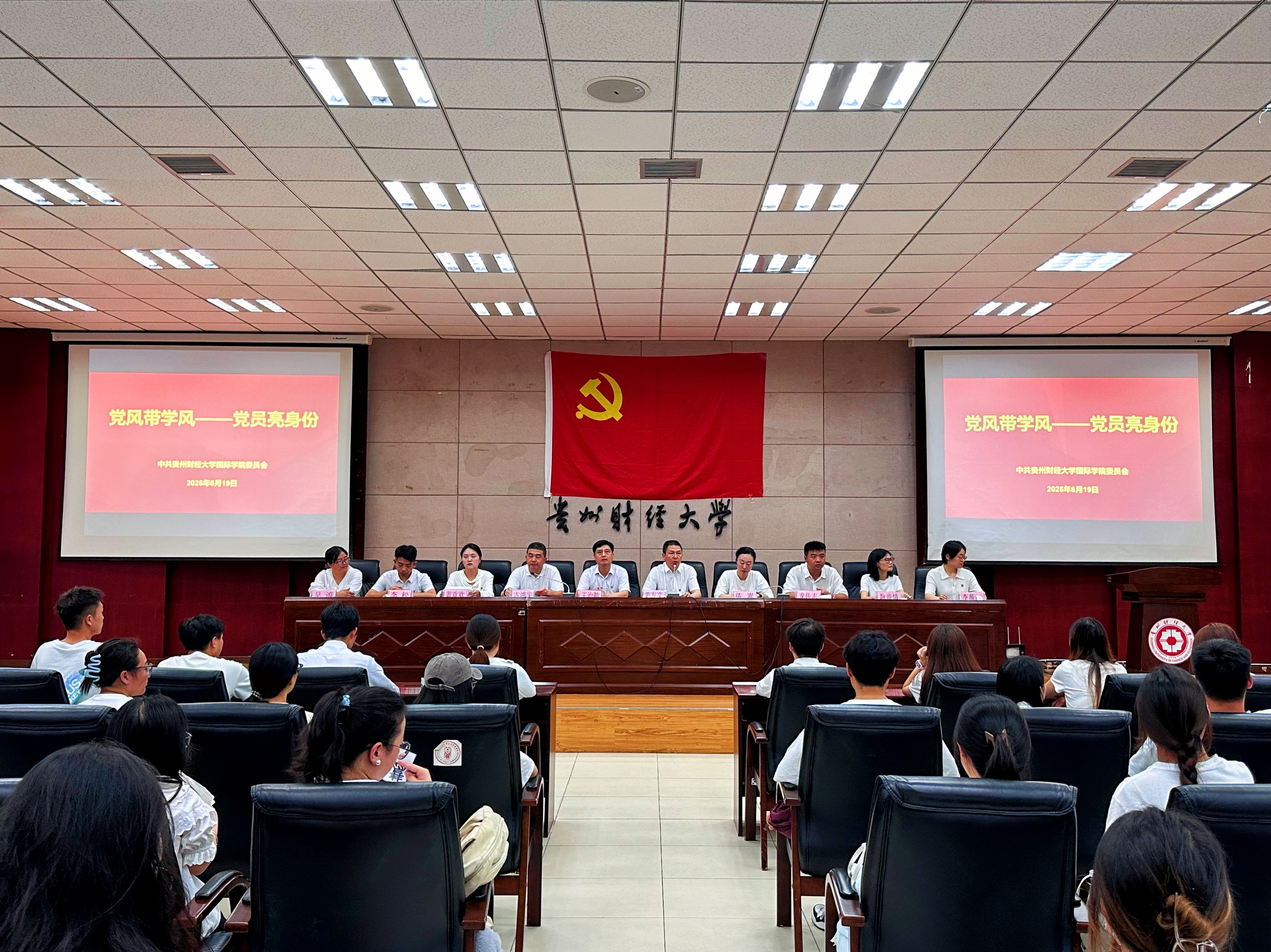 (2026世界杯预测 唐芯兰 报道|摄影 罗紫晗 张誉敬)为切实强化考风考纪,筑牢学风建设,引导员工遵规守纪。6月19日中午,2026世界杯预测在正德楼114报告厅开展“党风带学风——党员亮身份”活动。国际公司党委书记王治航、党委副书记、经理姜友文,党委副书记古鸿宇、陈嵩,各党支部书记出席。公司184名师生党员参加。活动由古鸿宇主持。