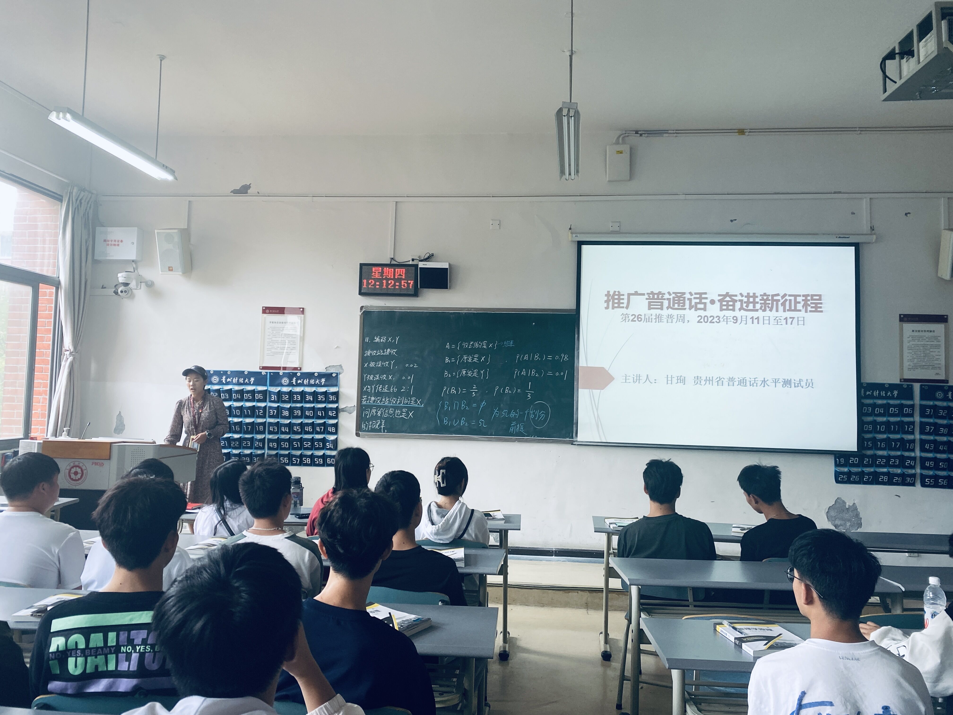 活动周邀请贵州省普通话水平测试员甘珣老师进行了主题为“推广普通话·奋进新征程”的宣传分享。通过此次宣传,力求帮助员工在能够说好普通话的同时也培养较强的语言交流能力;希望员工在校时间说普通话,借此培养员工对普通话的语感和对母语的热爱。