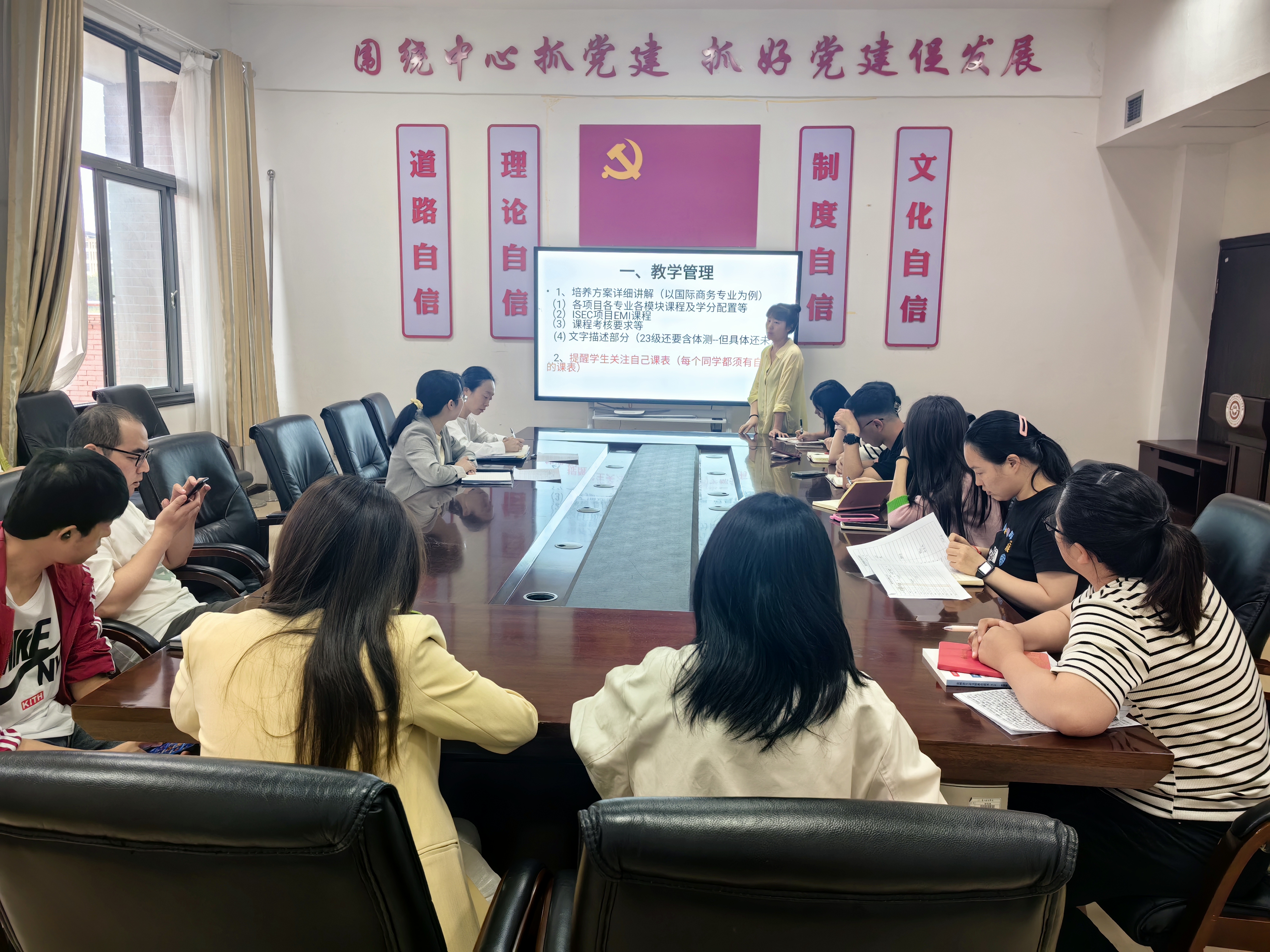 孙思芳从教务管理、学籍管理、考务管理和实习实践管理四个方面进行了全面详细的讲解。通过此次培训,老师们对于教务管理工作有了更深入的了解,辅导员能够对员工学业进展提供更有针对性的指导和帮助。
