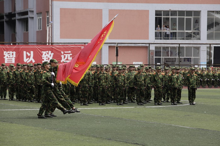 肖小虹讲话指出,同学们要大力弘扬爱国主义精神,脚踏实地,刻苦学习,把军人的纪律、军人的作风带到平时的学习和生活中去,继续发扬在军训中养成的良好习惯,努力拼搏、立志成才!并宣布鹿冲关校区2021级员工军训总结暨汇报表演大会圆满结束。