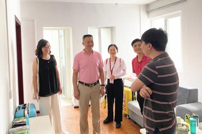 杨勇一行先后实地走访慰问了实践团队员居住宿舍,用餐食堂等,详细询问了队员们的工作开展情况和三下乡的感受,并勉励队员们要积极投身乡村振兴,利用三下乡的契机学知识、长才干,为当地教育、文化以及精神文明建设做出自己的贡献。