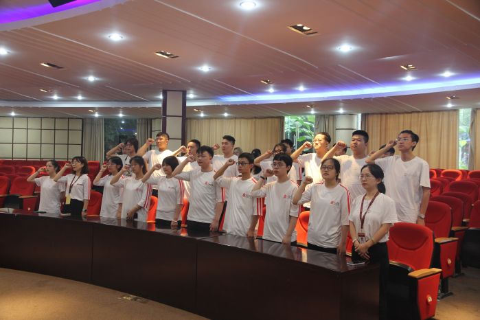 员工志愿者代表满津萌上台发言,表明自己和同学们在此次暑期三下乡社会实践活动中坚决遵守纪律,安全第一,不负期望,勇担重任。全体同学在领誓人的带领下进行庄严宣誓,表明坚定决心与斗志;