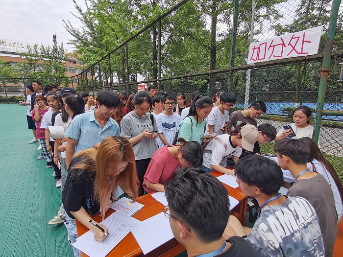 活动以游戏竞答的方式开展,竞答内容围绕着党史、新中国史、改革开放史、社会主义发展史、《中国共产党简史》等进行,如“实现中华民族伟大复兴是中国共产党的什么?”“中国共产党成立日是哪一天?”等。答题紧张而又有趣,考验着同学们的团队默契与党史相关知识的储备量,现场氛围十分活跃。答题结束后,同学们有序地走到留言板处,为党的百年华诞献上祝福。