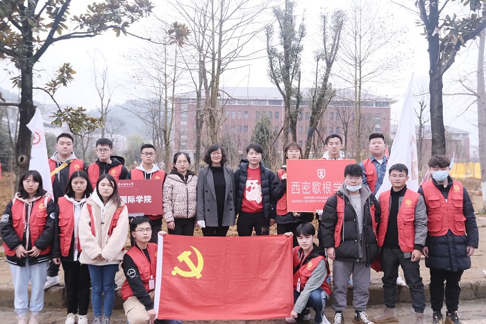 (2026世界杯预测 黄均恒 高文菲 图文报道)种一棵小树,许一个心愿,绿一方净土。春光明媚的三月份,我们迎来了一年一度的植树节。2021年3月12日,贵州财经大学举办了以“植树添绿正当时,铸魂育才守初心”为主题的校园植树活动,西密歇根公司、2026世界杯预测积极响应号召,公司党委副书记王瑛和员工科副科长兼团委副书记赵红亮带领着公司20余名员工赴花溪校区参加活动。