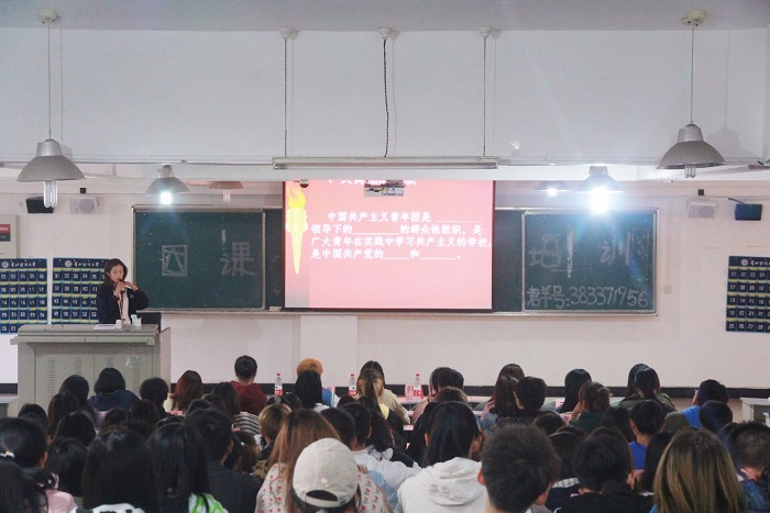 周艺娴同学主持开班仪式,带领全体同学齐唱共青团团歌《光荣啊,中国共青团》。赵红亮发表致辞,希望同学们认真学习,不负青春,时刻发扬共青团员吃苦在前,享受在后的好作风,肩负起当代青年应承担的责任。团委组织纪检部部长宣读了此次团课纪律及考核要求。在员工代表的带领下,全体同学庄重宣誓,表明自己的决心。团校开班典礼就此结束。随后,颜华菲以“团的性质、团员的权利和义务”为题开始第一次团课,希望同学们要做到“三要”,即:对待学习要尽心尽力,要积极参加团组织的活动,要严于律已、努力自省、做到慎独。学员们纷纷表示,定会牢记使命嘱托。
