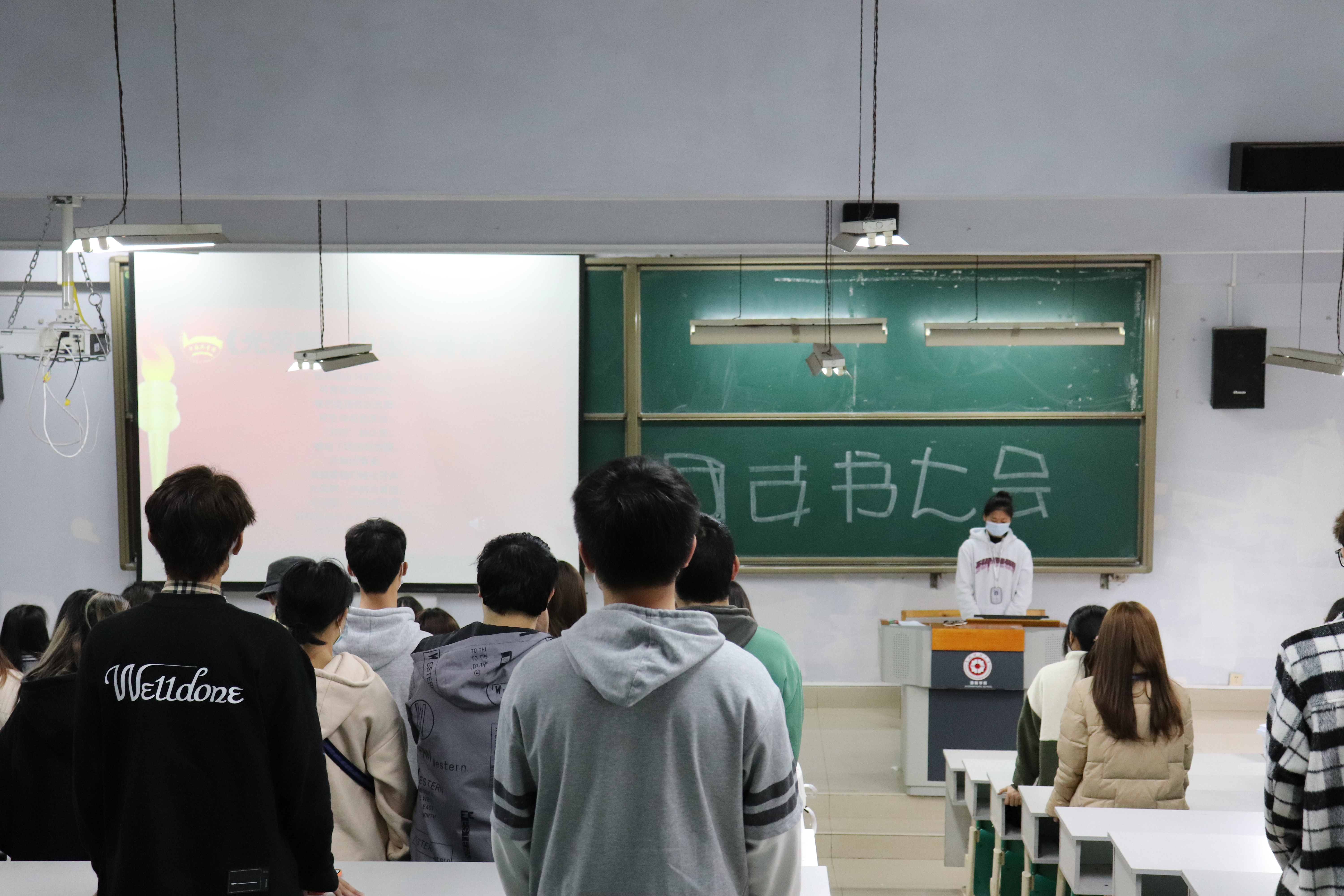大会开始,全体成员起立奏唱团歌。