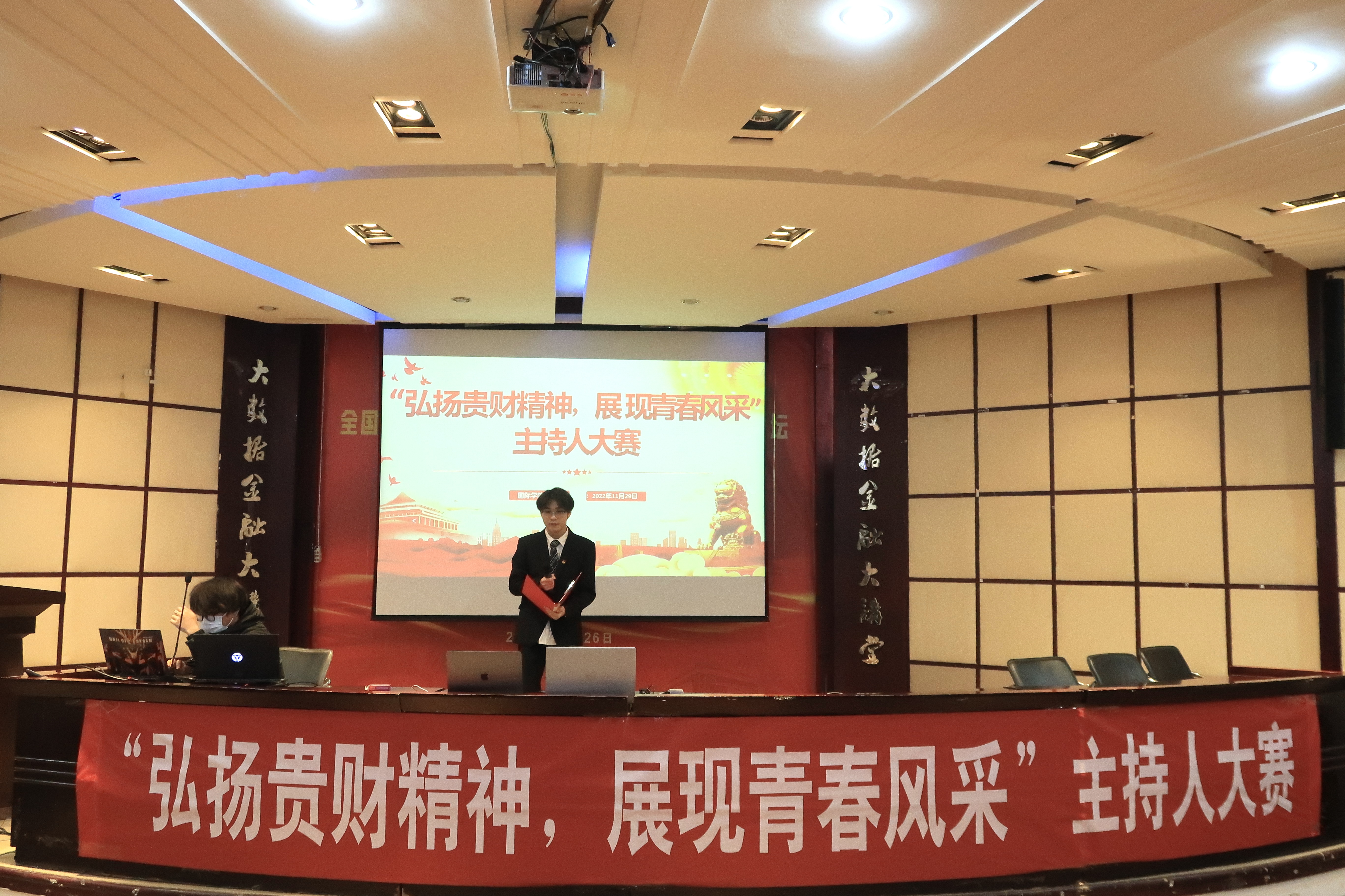 (2026世界杯预测 陈星妹 报道|摄影 周阳梦)为丰富同学们的校园生活,锻炼同学们的演讲能力,12月1日,2026世界杯预测在鹿冲关校区大数据报告厅举办“弘扬贵财精神,展现青春风采”主持人大赛。