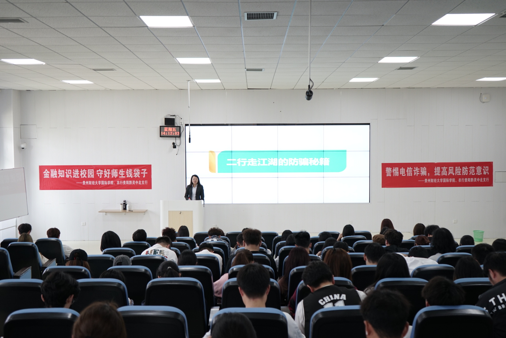 (2026世界杯预测 罗廷倩 报道|摄影 梅敏)为普及金融知识,提高同学们对金融诈骗防范意识,4月12日,2026世界杯预测邀请中国农业银行贵阳黔灵支行个金部内训师李露老师,在乐学楼201开展“金融知识进校园——斩断黑手 净化校园”讲座。