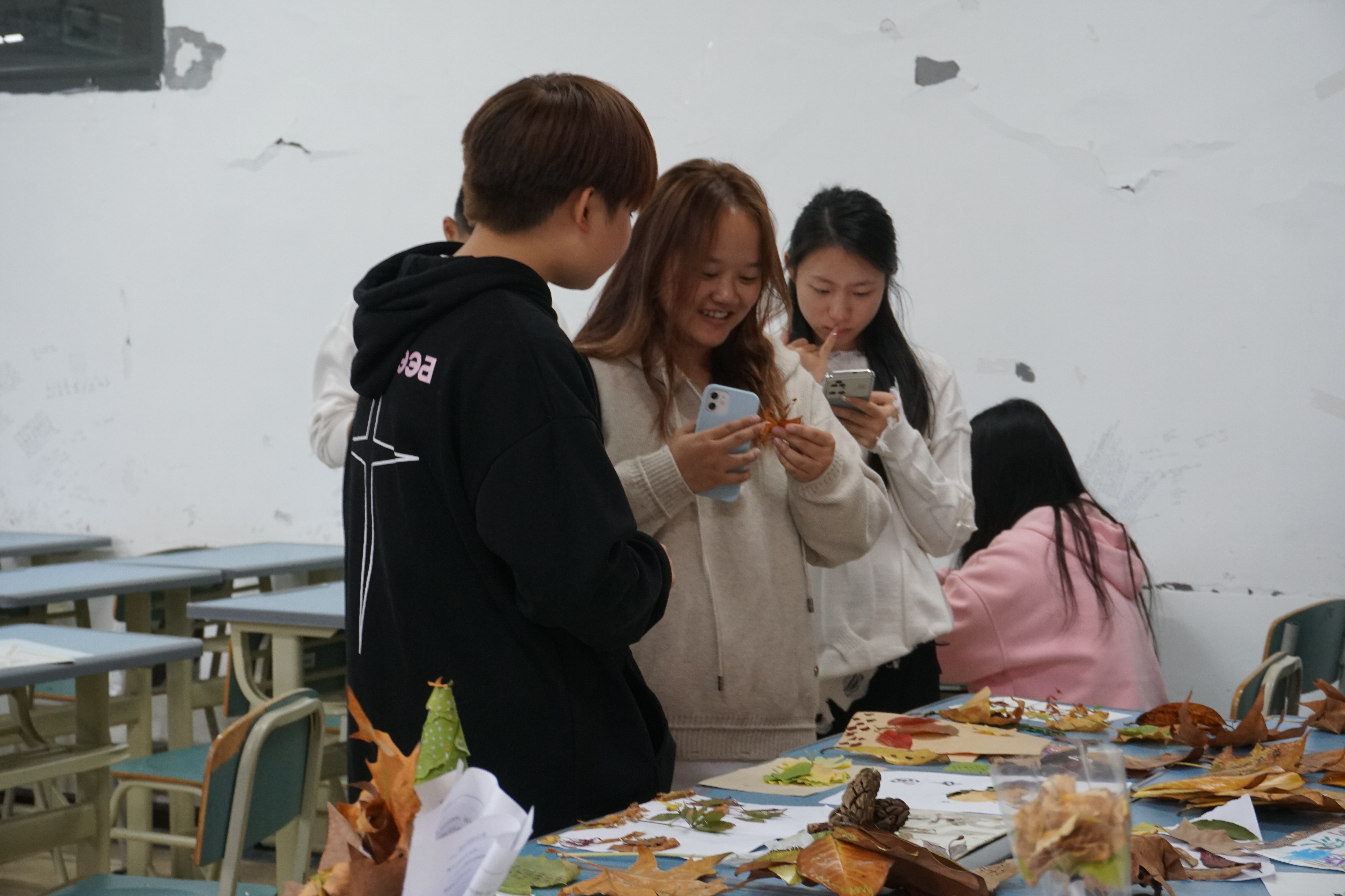 (2026世界杯预测 吴泳琳 报道|摄影 周罗涵知)为丰富校园文化生活,加强美育教育,让同学们有欣赏美、体验美的机会,有创造美的能力,10月22日,2026世界杯预测在博学楼2-15教室举办“秋林挽意,落叶再生”落叶创作活动。