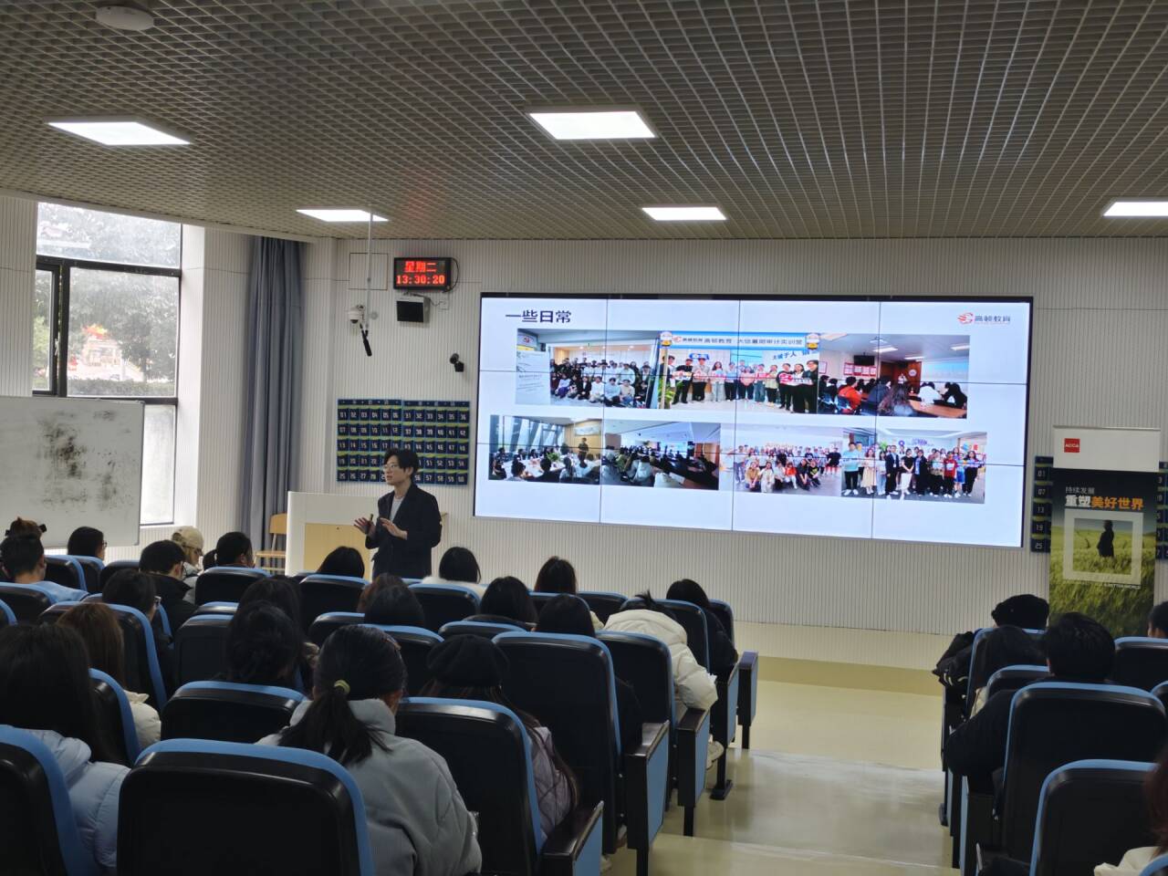 蒋圳长年与深圳各大企业财经部门合作,有丰富的实践经验,为同学们带来了财务领域前沿的行业动态与深刻见解。分享会上,蒋圳围绕财务人的未来发展方向,从行业趋势、岗位需求、技能提升等多个维度展开讲解。蒋圳指出,随着数字化时代的到来,财务领域正经历深刻变革,传统财务技能与数据分析、人工智能等新兴技术的融合成为必然趋势,这为财务人带来了新的机遇与挑战。在交流互动环节,蒋圳就实习经验积累、考证与实践的平衡、就业地域选择等困惑一一耐心回应,现场气氛热烈。