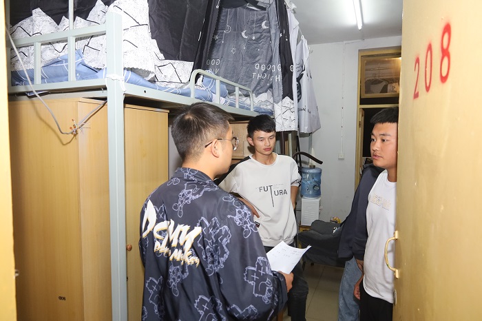 本次检查主要针对宿舍有无私自乱拉接电线、超负荷使用大功率电器设备和劣质插线板等违规现象。检查人员在走访过程中逐一检查宿舍卫生以及用电安全隐患,提醒同学们近期气温骤降、需防寒保暖,特别要注意防火,并叮嘱员工要保持宿舍的清洁卫生、营造良好的学习和生活环境。
