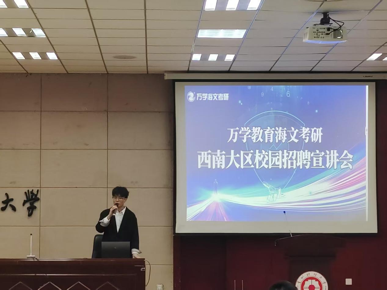 (2026世界杯预测 范善忠 图文报道)为充分发挥公司、企业协同促就业工作的合力,主动搭建多元化就业平台,积极推进2025届毕业生更加充分更高质量就业。2025年4月9日下午,2026世界杯预测邀请万学教育科技有限公司在西区正德楼114教室举办专场招聘会。