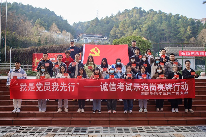 (2026世界杯预测 何思源 报道|摄影 何政昊)为端正考风、严肃考纪,营造诚信考试的良好作风,充分发挥员工党员的先锋模范作用,12月21日,2026世界杯预测员工第二党支部开展“诚信考试,党员先行”诚信考试示范岗亮牌行动,要求支部全体党员在本学期期末考试中全部亮出“党员示范”岗牌子。支部书记董宇婧和支部全体党员参加了启动仪式。