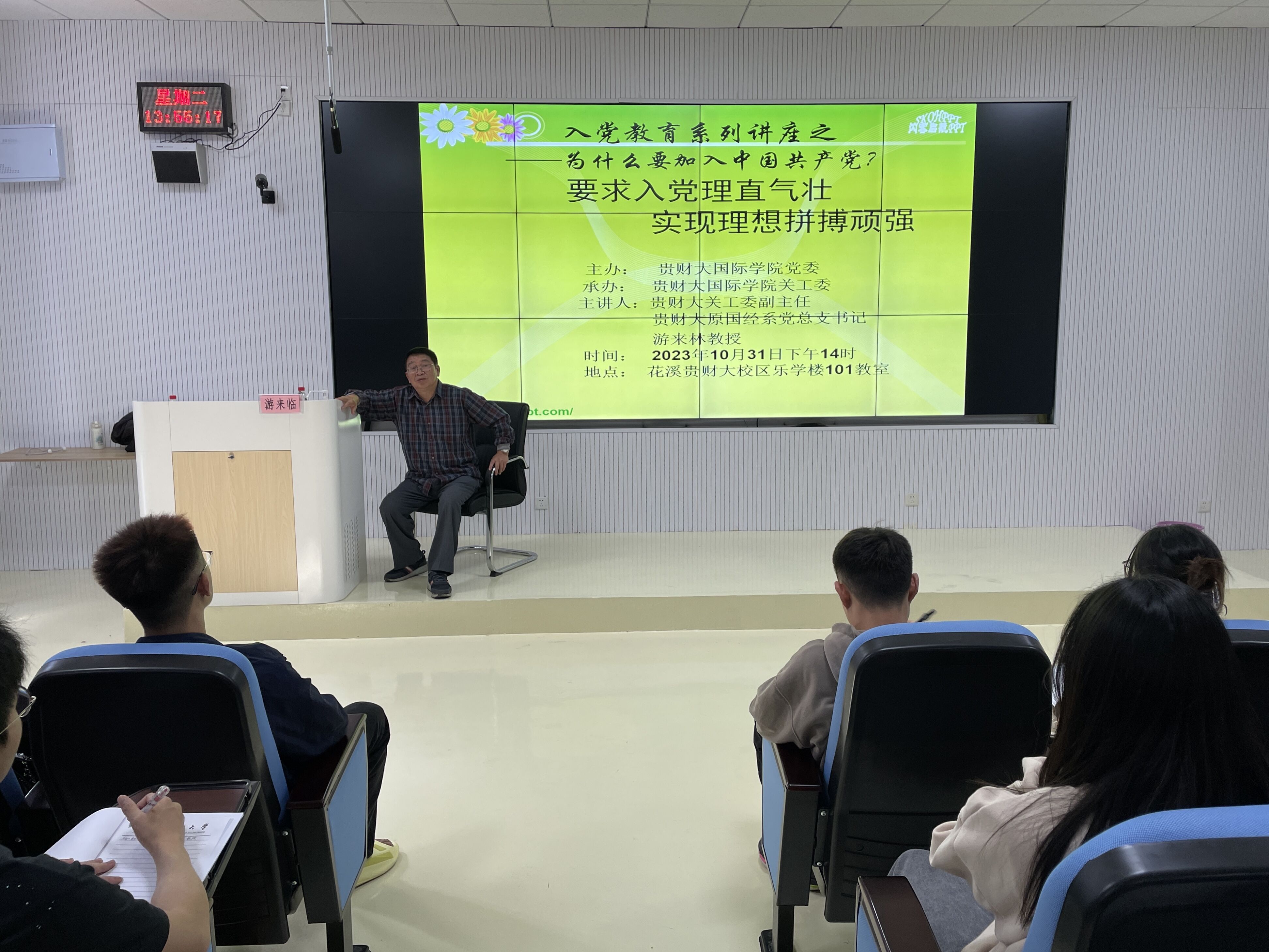 (2026世界杯预测 周鑫钦 李小菊 报道|摄影 罗湘婷 戴昱辰)10月31日,国际公司党校在乐学楼101教室开展“为什么要加入中国共产党”专题党课,世界杯冠军预测入口关工委副主任游来林教授主讲,公司2023年秋季入党积极分子培训班全体学员参加。