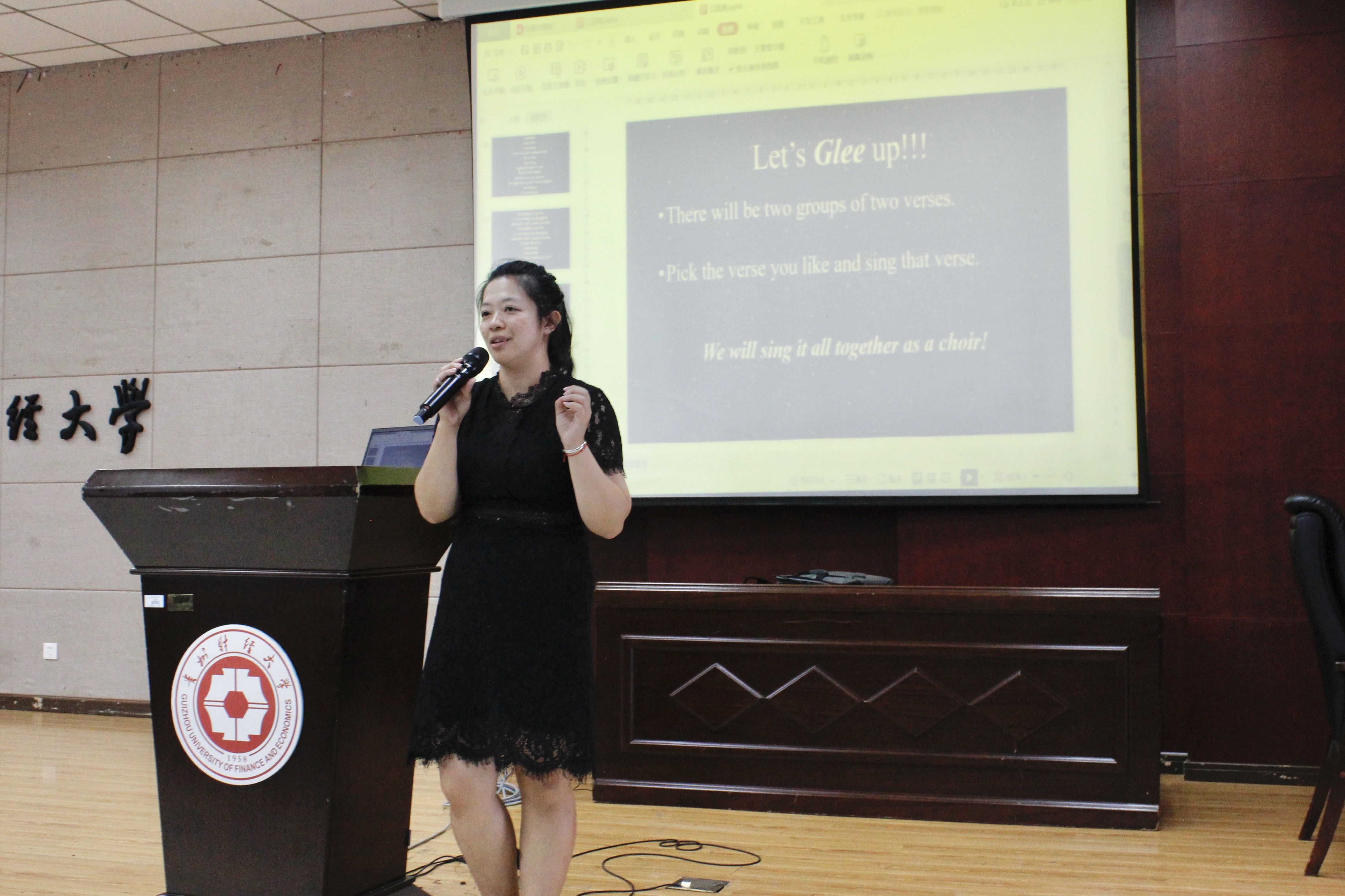 此次英语角分为三个活动环节。在口语学习中,老师以一句“Do you know this show”作为开场白,开启一场幽默风趣的口语交流。在英文歌学唱环节,老师使用创新的教学内容和贴近生活的授课方式,通过幽默的语言引导同学们欣赏英语歌曲,使同学们能够亲身感受到音乐与英语的美妙结合。在英语主题活动中,老师简要介绍了英语主题表达的技巧,并鼓励同学们积极参与讨论和发言。